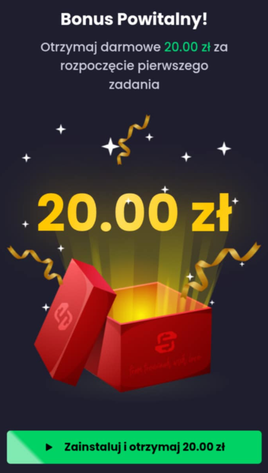 2️⃣ Za rozpoczęcie pierwszego zadania (instalację gry) otrzymasz bonus powitalny 20 zł oraz unikalne promocje i bonusy.