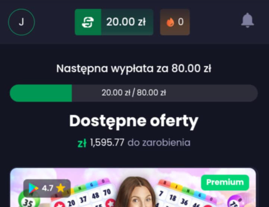 3️⃣ Zacznij wykonywać kolejne zadania (gry, aplikacje, reklamy, ankiety, bonusy, promocje).