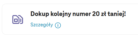 2️⃣ 20 zł rabatu za zakup drugiego nr w abonamencie, czyli 55 zł / miesięcznie:
